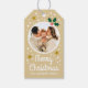 Gör dina helgdag-presenter extra speciella med märkre för anpassningsbarnas fotopresenter! Den här festmallen är personlig med ett favoritfoto och namn i familjen på framsidan, med plats på baksidan för en handskriven anteckning. En vintage-stil-design som innehåller enkla illustrationer av hullbär, snöflingor och stjärnor, tillsammans med hälsning "God jul" i prästertypografi av återföreskrifter. Den här leksaken ger en nostalgisk kontakt med en modern tvist och är för barn, familj och vänner i perfekten! Tryckt färg: rött, grönt, vitt och guld.