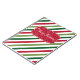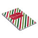 God jul illustration med text och snöflingor på röd, vit och grönt strimlad bakgrund