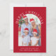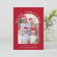 Säsong-rött julkort med helgdag som visar ditt foto i ett bågformat ram, "God jul" i klassiskt vitt serif-typografi, och ditt namn och ett säsong hälsning i ett vanligt vitt bokstäver. Baksidan har ett år på sig för att granska fotokollage av dina favoriter och stunder från det senaste året.
