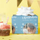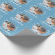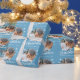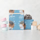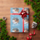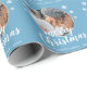 Blå familjefoptosnöflake God jul, Papper. Anpassningsbarnas foto i ett runt ram. Bakgrunden är blå med vitt snöflingor. Anpassa den pappra inslagningen med familjens foto, namn och år. En underbar julklapp.