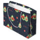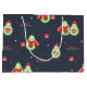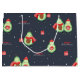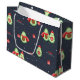 God Jul. En söt avocado som bär en scarf och håller en Julklapp.
