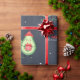 God Jul. En söt avocado som bär en scarf och håller en Julklapp.