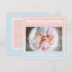 Mjukt fotohälsningskort för baby blue och rosa pojke/flicka, som använder helgdag "Merry God jul". Lägg till foton och text.