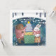En söt illustration av en björn och en kniv som dekorerar Julgran med ljus