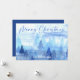 Skicka hjärtliga julhälsningar med det här stillsamma julkortet i akvarell som visar en snöig skog i lugnande nyanser av blått. Framsidan visar elegant typsnitt med texten "God Jul" ovanför ett fridfullt landskap med tallar och utrymme nedanför för ditt familjenamn. Baksidan är helt anpassningsbar - lägg till din egen julhälsning eller använd det medföljande säsongsmeddelandet för ett polerat och färdigt kort. Ett vackert sätt att dela glädje, frid och kärlek under julen.
