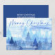 God Jul Blå Akvatell Målad Tallar Julkort