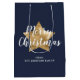 Personlig Festive Navy Blue Guld Star God Jul Medium Gift Bag Bag.