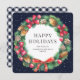 Elegant Blue gingham har ett visitkort för helgdag med en vattenfärgad julkrans av grenar, gräs och rött rosett band. Anpassa enkelt det här klassiska visitkortet för helgdag med ditt företag namn.