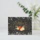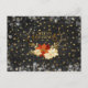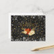 Vackert, modernt, festligt utformat helgdag med trendig-antenner med poinsettimiblommor och fixerad glansig faux-God jul-textdesign på en svart krita och guld konetti-bakgrund med vit bokeh gräns.