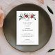 Det här enkla och elegant helgdag-menykortet har snyggt, vattenfärgade buketter som består av moderna gröna och röda och vita julblommor på vit bakgrund. Dessa menyer fungerar också perfekt för alla julfester.