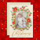 Poinsettias, bär och grönt accentuerar ditt favoritfoto med namn och hälsning i chic, ett vackert sätt att skicka helgdag cheer. Välj hög definition för bästa utskriftskvalitet.