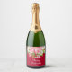 Personlig röd julchampagne med flaska-etiketter med stor rosa poinsettia, vinterblommor, gräs och holly lämnar dina uppgifter i chic. MATCHING-objekt i vår butik.