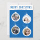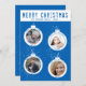 God jul Blue 4 Boll Family Photo Collage Helgdag Card. Juldesign för en familj - fyra jular bollar med foton inuti, text och namn. Lägg till foton och anpassa eventuell text på kortet.