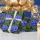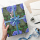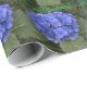 God jul är skrivet i grönt-skript. Söt blå vattenblommor och stora gröntar löv. Originalfotografi © TamiraZDesigns.