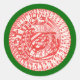 Teckning i en mandala, i en abstrakt juldesign, i rött och vitt med God jul, tryckt på klistermärken, med grönt gräns. Kan anpassas med ett annat gräns färg. Polkagrisar och musik noter omger ytterdelen. Du hittar också piano nycklar, moroccos, trummor och gitarrer på musikinstrumentens menagerie.