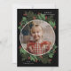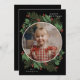 Den här God jul-fotokortsdesignen har en hand som illustrerar en grön andedräkt fylld med löv, bär, sprit från gräs och skarpsill. Med en svart bakgrund visas illustrationerna. Den här designen har också ett cirkelformat foto. En festlig och illustrerad utformning av helgdag som din mottagare skulle vilja ha kärlek. Du kan anpassa bakgrunden till den här designen i färg och hitta komplimanger i min Zazzle-butik.