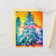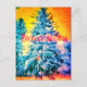 vykort med GOD JUL hälsning över min färgad foto av snö klädda evergreens i Wolverine Sjö, MI