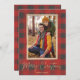 God jul på rött och grått buffalo-kontroll innehåller ditt foto på en faux guld-folie med namn i chic på grund och ditt personliga meddelande på baksidan. Välj hög definition för bästa bildutskriftskvalitet.
