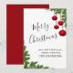 Söt rustiskt god jul-kort med en burgnig vintergrön gräs cone nål med röda julprydnader och dekorationer, god jul och gott nytt år varmaste önskemål från (eget namn)