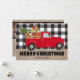 Söt och rustik svart-vit buffelrandig och burlap "God Jul" välkomstkort med en röd pickup-lastbil full av julpresenter och ett träd för högtiderna. Baksidan av detta kort har 3 av dina favoritfoton och ett meddelande, som är helt anpassningsbart. Anpassa med ditt familjenamn. Detta kort kommer att bli alles favorit i år.