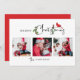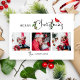 Den här unika och festliga helgdag har tre fyrkantiga fotomallar, redigerbar text och en roligt God jul-kalligrafi hälsning som är förskönad med färgstarka botaniska vinter och en söt röd kardinal.