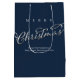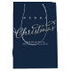 Den här designen har ett God jul-sött kalligrafskript, ett elegant-snöflake mönster, ett marint blått motiv mönster stil, vinterelegans från snö, visstiskt, ett snyggt-silver-skript med kalligrafi, minimalistiskt vitbrev, trendig för omslagning av julklapp, helgdag-anpassat presentmeddelande anpassningsbar, hälsning julklapp, helgdag presentförpackning