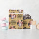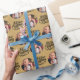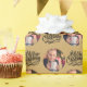 Fotoinslagning papper, personlig med bild och hand med God jul i borstad kalligrafi. Fotomallen har ställts in för att visning bild i rund form. Om du har problem med placeringen i bild kan du prova att beskära fotot till en kvadrat och ladda upp det på nytt. Bakgrunden till färg är guld, som du gärna vill ändra (klicka bara på "redigera med designen verktyg").