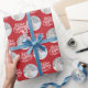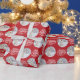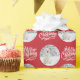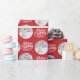 Fotoinslagning papper, personlig med bild och hand med God jul i borstad kalligrafi. Fotomallen har ställts in för att visning bild i rund form. Om du har problem med placeringen i bild kan du prova att beskära fotot till en kvadrat och ladda upp det på nytt. Bakgrunden till färg är röd, som du gärna vill ändra (klicka bara på "redigera med design verktyg").