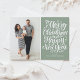 God jul och Gott nytt år! Skicka helgdag till vänner och familj med det här visuella, elegant- och festivt vykortet för fotot. Julkortet har modern kalligrafi. Anpassa genom att lägga till information. Den här grönten finns i färg som det finns ett fotopapport för julfoto.