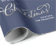 Den här designen har ett kalligrafiskt skript i god jul som är pappert med ett enkelt marint blått plaid mönster, ett typsnitt för snyggt i silver, en enkel minimalistisk utformning av mönster, en rustik land röd trendig blå, gröntar för julomslagning, helgdag skräddarsydd anpassningsbar-presentfigursättning, personlig förenklad klassisk, snygg elegant-typografi kreativ-text, stil-stollig, söt roligt för liten papper