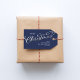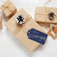 God jul Calligraphy Script Navy Blue Play Presentetikett