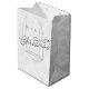 Den här designen har en god jul-söt calligraphy-skriptpresentväska med en elegant silver snowflake mönster, vinterelegans för snö, visstiskt, snyggt-trendig calligraphy-skript typsnitt, minimalistiskt minsta vita bokstäver, minsta möjliga radmatningsmaterial för julomslutning, helgdag för anpassad anpassningsbar, hälsning julklapp, helgdag festförpackning, papper för förenklad