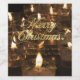 God jul Candlelight Burning Candlele Photography Elegant PEG (Vin) eller mousserande vin Flaska-etikett med anpassningsbar text, med Mysigt