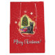 Det här är en söt juldesign med en sjudande röd fullt av stjärnor och litet snöflingor och med en vacker katt framför Julgran. Skicka dina älskande, mysiga, berömmande vibes till dina kära!