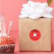 Digitalstencilmålning av mörk färgad "God jul och vitt snöflingor", solid röd bakgrund, i form av en CD.