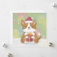 En söt illustration av en walesisk Corgi som har en gåva i snö
