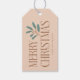 Märkre för julklapp med hand plockade som illustration av helgdag grey. Det står "merry chirstmas" i ett festive och elegant font.