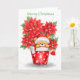 Väldigt söt björn med jultomtehatten som piper ut från dekorerad poinsettias, God jul.