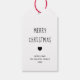 Dessa enkla och snyggt svarta och vita helgdag säger "God jul" i trendigets typografi, med ett sött passande hjärta. Baksidan av märkrn har en svart och vit gingham mönster.