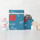 God jul personlig papper med söt gåva och eget namn på och tealbakgrund