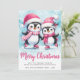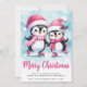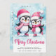God jul Cute Penguin Ice Skater Blue Rosa Julkort