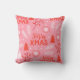 Denna inspirerade rosa julkudde är perfekt för ett barn Julklapp eller för baby 1:a jul. Den här söta julkudden har en rosa bakgrund med text i ett roligt som säger God jul. Julgranar snöflingor och botaniska accenter i rött och vitt fullbordar detta söta helgdag- och presentbyte.