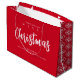 Den här designen har en god jul-söt calligraphy-skriptpresentsäck med en vit snöflingformad stollig-roligt, med en röd och vit vinterformgivning av snö, en festlig vintersnöflingdesign, ett typsnitt för kalligrafi av snyggten, helgdag för julomslagning, skräddarsytt julklapp trendig, anpassningsbar julklapp, hälsning festförpackning, traditionell vinterdesign
