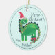 God jul Dinosaur Namn keramiskt ornament. Anpassa till namn och år.
