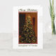 Denna julkort är för en dotter och henne fiancen med ett foto av en julgran som dekoreras med prydnadar och ljus som upptill inramas i rött och vit med två stora snöflingor på vitramen och ord "god jul" och "den längst ner dottern & fiancen".