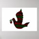 Konturerna av en duva som bär en fredsduva i gren fylls med önskemål av ett God jul i rött, grönt och orange på många olika språk.