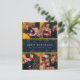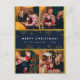 Detta vykort är idealiskt för alla familjer som vill ha ett handskrivet meddelande på sina fotokort i år. Den här designen har ett fotogalleri med 4 bilder på en chic, guld-folieramat. I mitten av kortet finns en djup blå rektangel med gyllene snöflingor med "God jul!" och din familj namn och året därunder i mycket modern skrift.