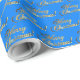 God jul Elegant Faux guldfärgad fetter Golden Text Mönster på Cerulean Blue Background Julhelg Glossy eller Matte Gift Wrapping Papper kan du lägga till namn eller text