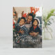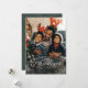 "God jul" i en elegant typsnitt sitter högst upp på ett vertikalt foto ramad med en snöig fläck. Detta klassiska kort är det perfekta sättet att skicka julhälsningar till vänner och familj. Baksidan är en festlig stilren jägaregrön med en koordinerad snöig mönster. Den gröna färgen kan ändras genom att klicka på "anpassa ytterligare".