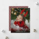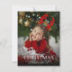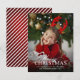 Elegant Jul-Helgdag Fotokort med dekorativ typografi över utfallsfoto från fullt. Genomskinlig övertoning (valfritt) för ljusfoton. Röd och vit candy cane rand baker.